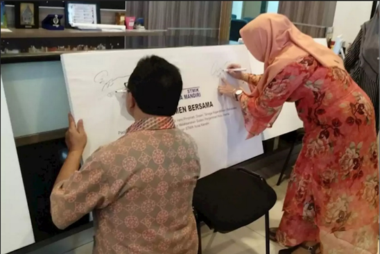 Pasca penandatanganan Komitmen Bersama SPMI oleh seluruh Civitas Akademik STMIK Nusa Mandiri di STMIK Nusa Mandiri kampus Kramat 18, Jl Kramat Raya No 18, Kwitang, Senen, Jakarta Pusat, Selasa (3/12). Upaya Pimpinan STMIK Nusa Mandiri ini didukung oleh Yayasan Indonesia Mandiri (yang menaungi STMIK Nusa Mandiri). Hal itu disampaikan Ketua Yayasan Indonesia Mandiri, Sigit Swasono.