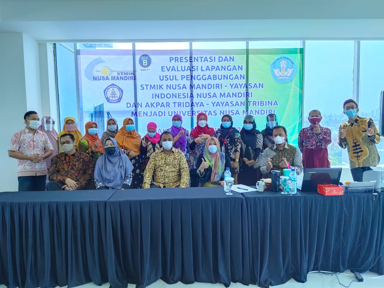 Proses Presentasi dan Evaluasi Lapangan Usul Penggabungan STMIK Nusa Mandiri – Yayasan Indonesia Nusa Mandiri dan Akpar Tridaya- Yayasan Tribina Menjadi Universitas Nusa Mandiri yang dilakukan di Nusa Mandiri Tower (NMT) Jatiwaringin pada tanggal 27 Januari 2021.