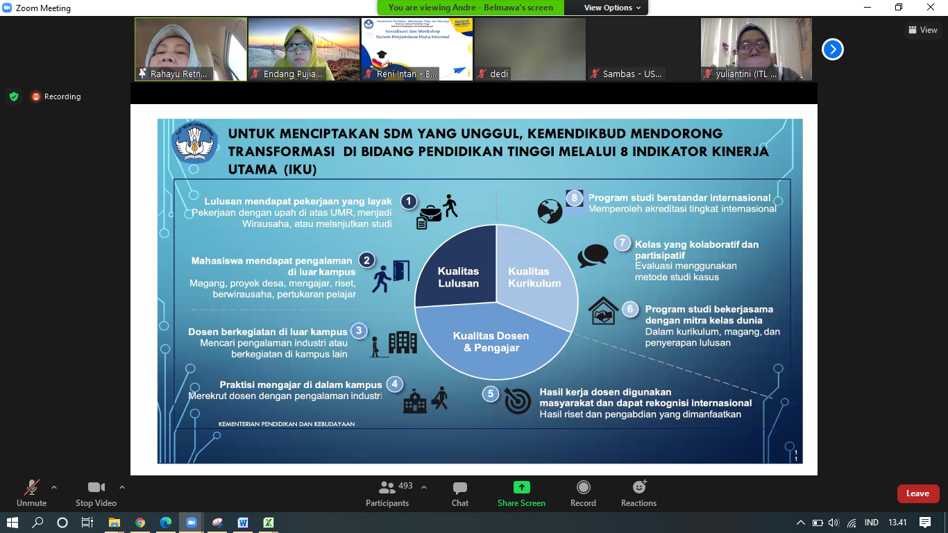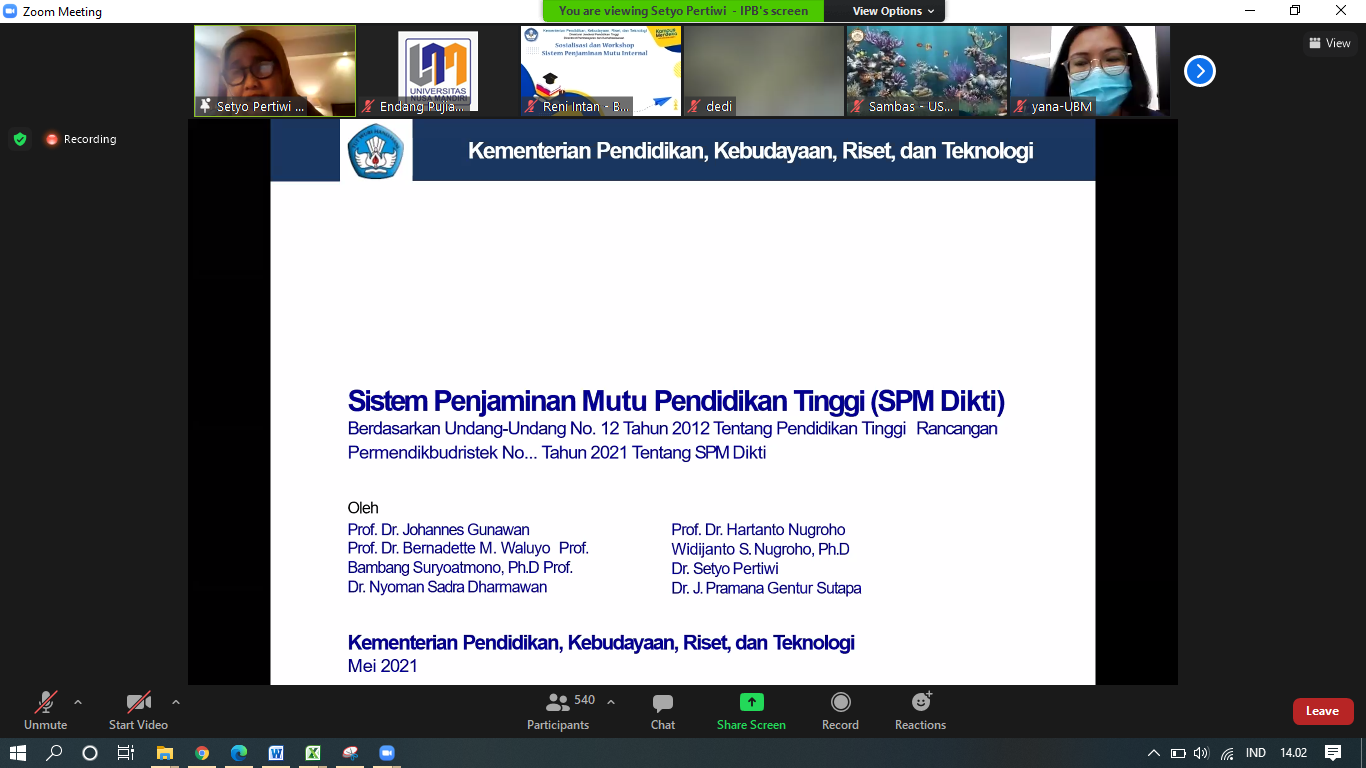Kegiatan sosialisasi dan workshop  ini dilaksananakan secara daring dengan menggunakan virtual  zoom meeting dengan link: https://zoom.us/j/97306485783 (Passcode: 123456). Kegiatan ini diselenggarakan oleh LLDIKTI Wilayah III  yang  dilaksanakan pada tanggal 24 Mei 2021 dengan narasumber Rahayu Retno Sunarni, Setyo Pertiwi, Bambang Suryoatmono dan David Aulia Akbar. Pada Kegiatan ini dibahas tentang paparan Sistem Penjaminan Mutu Internal, Penyegaran Kebijakan SPM Dikti, Penyegaran Kebijakan SPMI  dan sistem Pelaporan SPMI.