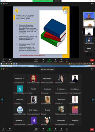 Kegiatan ini dilaksananakan secara daring dengan menggunakan virtual zoom meeting dengan link: https://us02web.zoom.us/j/84082926765?pwd=dUIvTmFyMVBWeDVKR2tkUi9qZGNjUT09. Bimtek diselenggarakan oleh Asosiasi Institusi Pendidikan Vokasi Keperawatan (AIPViKI) Regional III DKI Jakarta yang berlangsung selama 2(dua) hari yaitu pada tanggal 4-5 Maret 2022 dengan narasumber Dr. Ir. Hisar Sirait, MA “Rektor IBI Kwik Kian Gie, Fasilitator Nasional SPMI-KemendikbudRistek”. Pada BIMTEK ini Dr. Ir. Hisar Sirait, MA menjelaskan mengenai penjelasan penyusunan Kebijakan SPMI, Manual SPMI, Standar SPMI dan Fomulir SPMI.