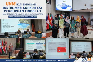 UNM melalui Biro Penjamin Mutu turut berpartisipasi dalam kegiatan Sosialisasi Instrumen Akreditasi Perguruan Tinggi (IAPT) 4.1 yang diselenggarakan bagi perguruan tinggi anggota Asosiasi Himpunan Lembaga Pendidikan Tinggi Informatika dan Komputer (HILDIKTIPARI). Kegiatan ini menjadi bagian dari upaya peningkatan mutu institusi dalam menghadapi transformasi kebijakan akreditasi terbaru dari Badan Akreditasi Nasional Perguruan Tinggi (BAN-PT).
